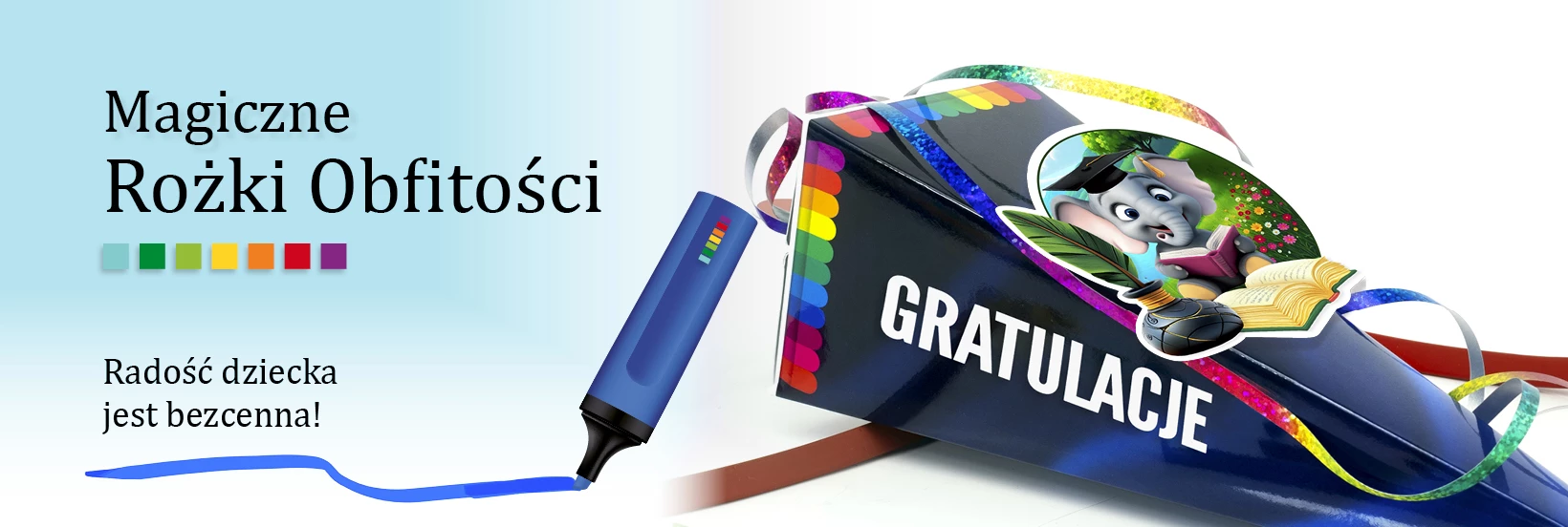 Naszym numerem jeden są rożki obfitości. To wspaniały prezent na rozpoczęcie roku szkolnego czy też pasowanie na ucznia. Mogą przybrać różne kształty (np. ołówek) i kolory, a do środka włożyć można wszystko, nie tylko słodycze. To niezmiennie ulubiony wybór rodziców i nauczycieli na podarunek dla najmłodszych!
