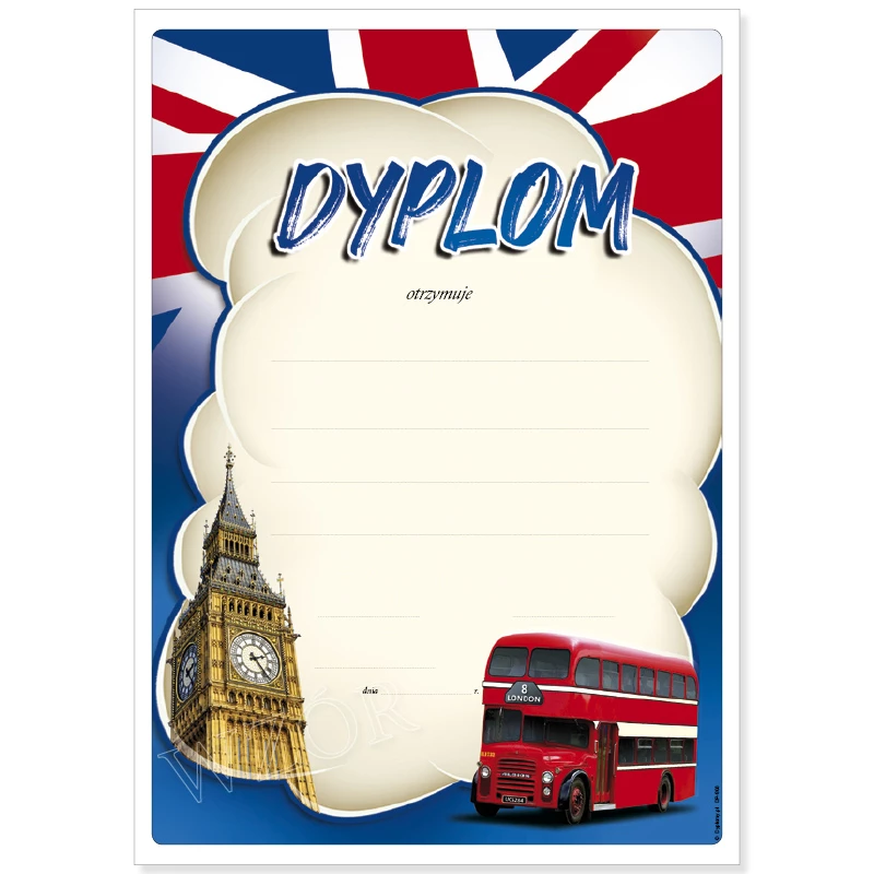 Dyplom językowy wydrukowany na sztywnym, śnieżnobiałym kartoniku. Wyróżnia go trwały nadruk oraz żywa kolorystyka.