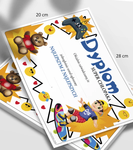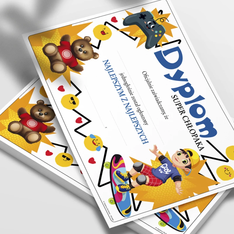 Dyplom „Super Chłopaka” to radosne wyróżnienie, które skutecznie motywuje dzieci i stanowi powód do dumy. Idealnie sprawdza się jako nagroda za zaangażowanie, dobre zachowanie oraz codzienne sukcesy, tworząc jednocześnie wyjątkową pamiątkę.