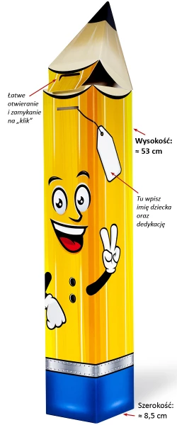 Pan Ołówek to największy rożek obfitości w kształcie ołówka. Właśnie dlatego coraz częściej wybierany jest zamiast popularnych tyt pierwszoklasisty. Jest po prostu gigantyczny. Dokładne wymiary znajdziesz w tabeli z parametrami produktu.