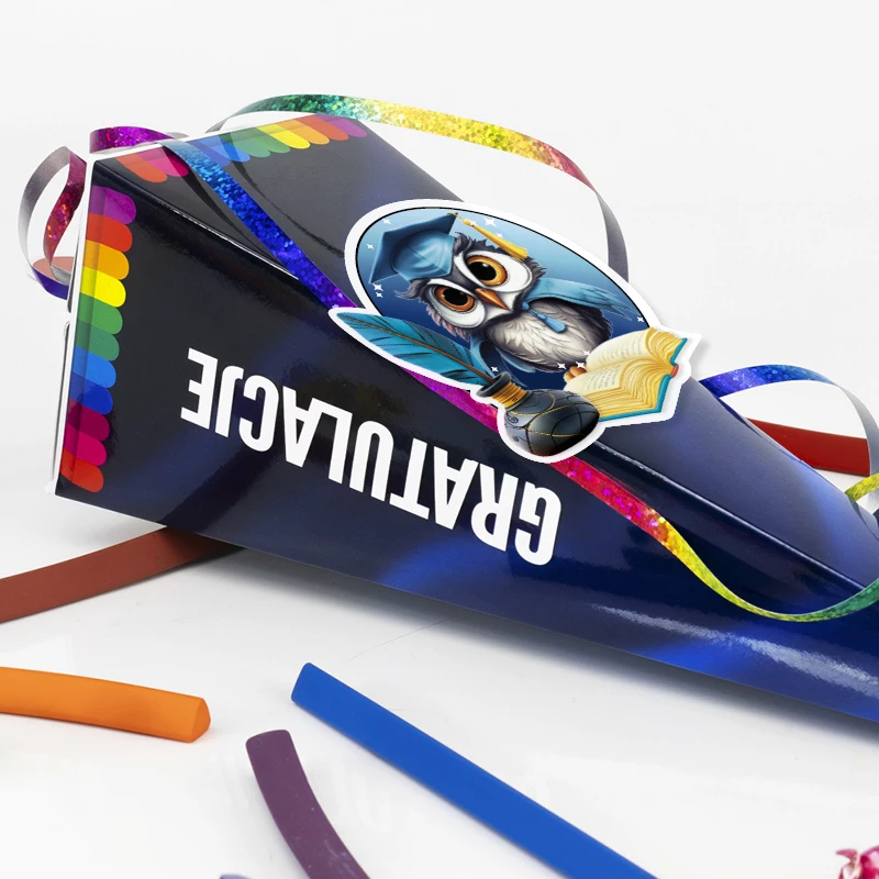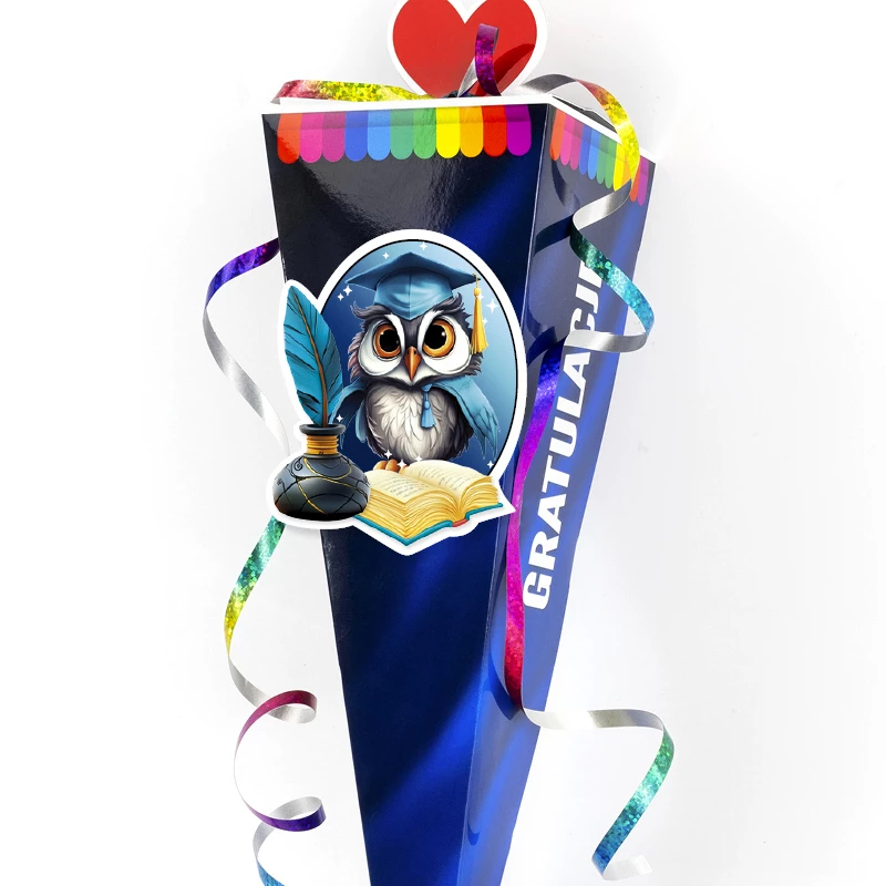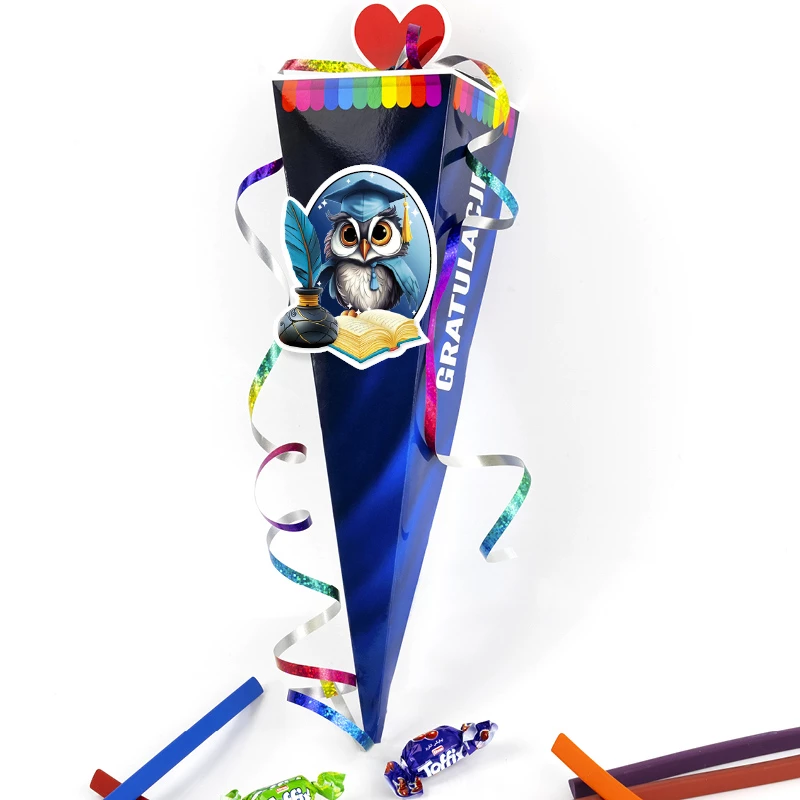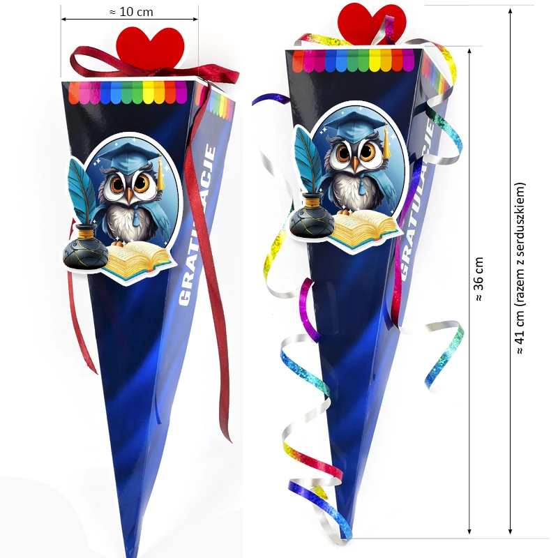 Szukasz wyjątkowego prezentu dla ucznia lub przedszkolaka? Nasze rożki zachwycają bajecznymi kolorami i trwałością. Szeroka konstrukcja bez trudu mieści ponad pół kilograma słodyczy.
