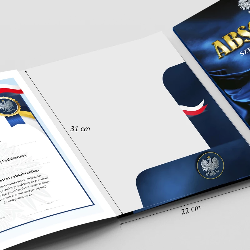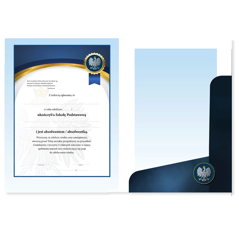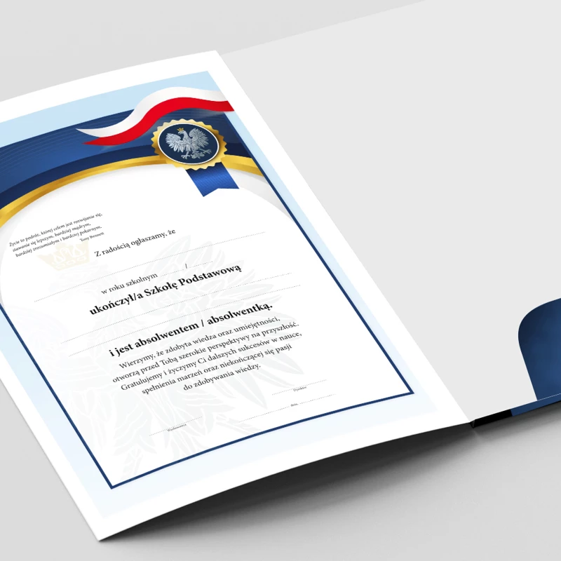 Zwróć uwagę na nadruk wewnątrz teczki. Znajduje się tam potwierdzenie ukończenia szkoły, które z powodzeniem może zastąpić tradycyjny dyplom.