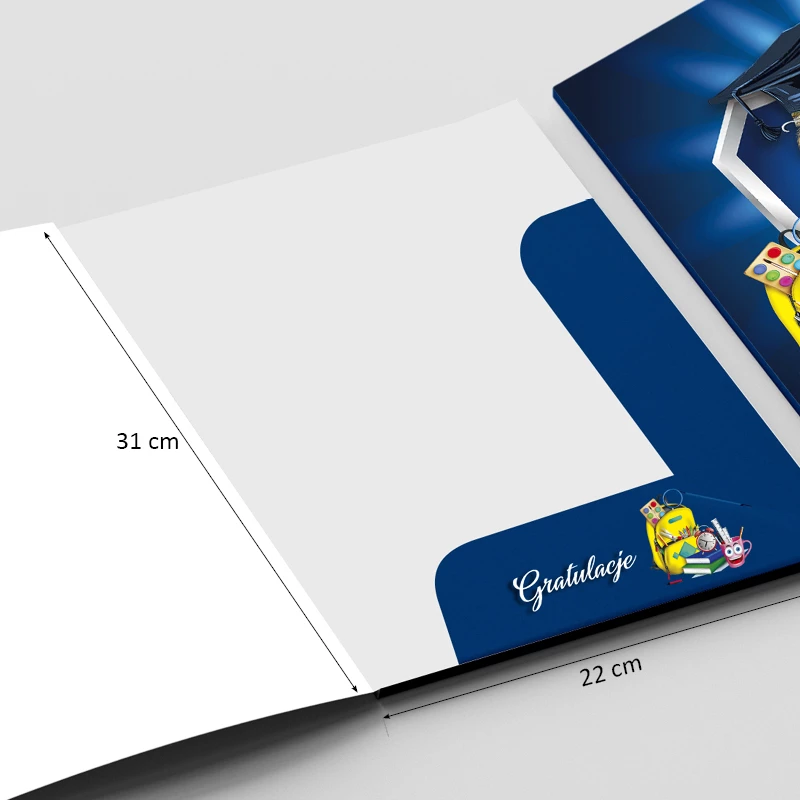 Elegancka teczka na dyplom i świadectwo, zaprojektowana z myślą o uroczystym zakończeniu roku. Łączy estetyczny wygląd z praktyczną ochroną dokumentów, nadając im odpowiednią rangę.